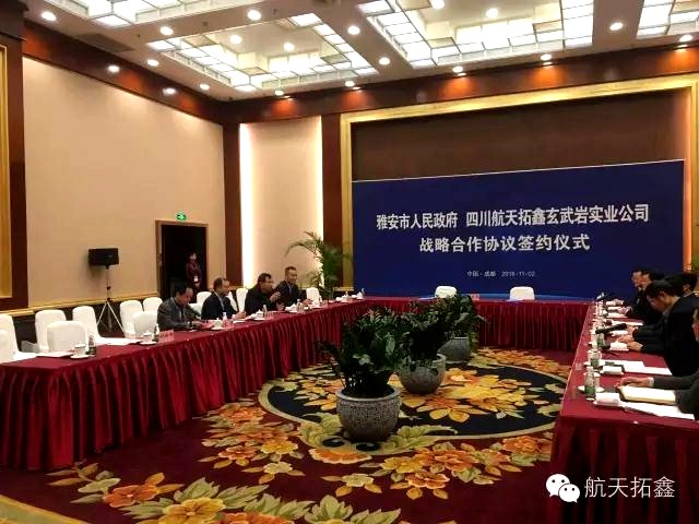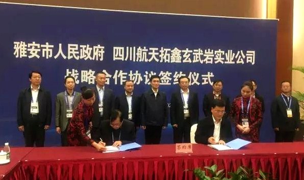 2016年11月2日下午,雅安市人民政府与四川航天拓鑫玄武岩实业有限公司战略合作协议签约仪式在成都世纪城新国际会议中心隆重举行。此次签约,标志着双方建立了稳固的战略合作伙伴关系,为玄武岩纤维产业在雅安市战略布局持续、健康、快速发展奠定了良好的基础。