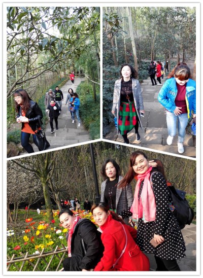 女员工们沐浴着暖暖的阳光,迎着和煦的春风,踏着欢快的脚步,来到美丽的桃花山山脚,这里山色葱郁,粉红的桃花甜美绽放,空气清新怡人,女员工们的欢声笑语撒在蜿蜒的山路上。