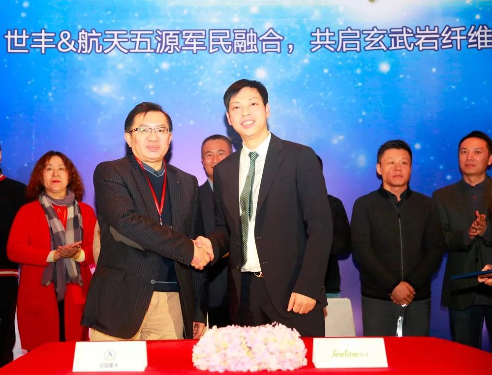 航天五源董事长曹柏青先生介绍,顺应国家“军民融合”产业发展的大趋势,航天五源在中国航天科技集团的支持下,与拥有优秀运营团队、丰富市场资源、坚韧创业历史、力求推动核心业务上市的上海世丰达成战略合作,把央企和民企的优势结合起来,共同开拓市场新领域。“双方不仅联合运营实业,还联合战略布局,合作力度之深,在玄武岩纤维应用于军民融合产业领域,可说达到了新高度!”据了解,曹柏青先生也是中国化学纤维工业协会玄武岩纤维分会会长、航天五源核心股东四川航天拓鑫玄武岩实业有限公司董事总经理,在玄武岩纤维领域权威“带头人”之一。