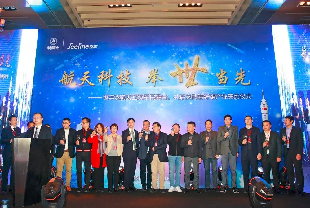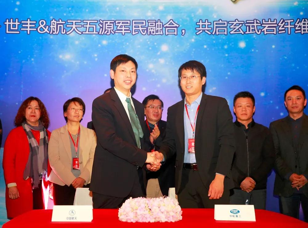 航天五源董事总经理叶孙全先生透露,航天五源和航天拓鑫,一直是国内推广玄武岩纤维产业的“排头兵”,承担了多项航天科技集团重要的民用技术产业战略规划项目,致力于推动玄武岩纤维这种绿色环保、功能强大的新材料的普及应用。世丰在与航天拓鑫和航天五源的交流中,深刻感到了使命感和机遇,为积极响应国家着重发展“军民融合”产业的号召,世丰愿意加入航天五源,支持玄武岩纤维产业的全国性布局以及产业规模化,全力推进在辽宁、浙江、江苏、海南、福建等区域的产业落地工作,并积极融合组建一批更具市场化意识的优秀实业运营团队。“今天的签约仪式只是个起点、是个宣言,接下来航天五源将用积极行动,来践行‘取天然玄武岩、建绿色新世界’的使命!”叶孙全说。