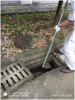 综合管理部宁良忠、张顺军主动进行排水疏通工作