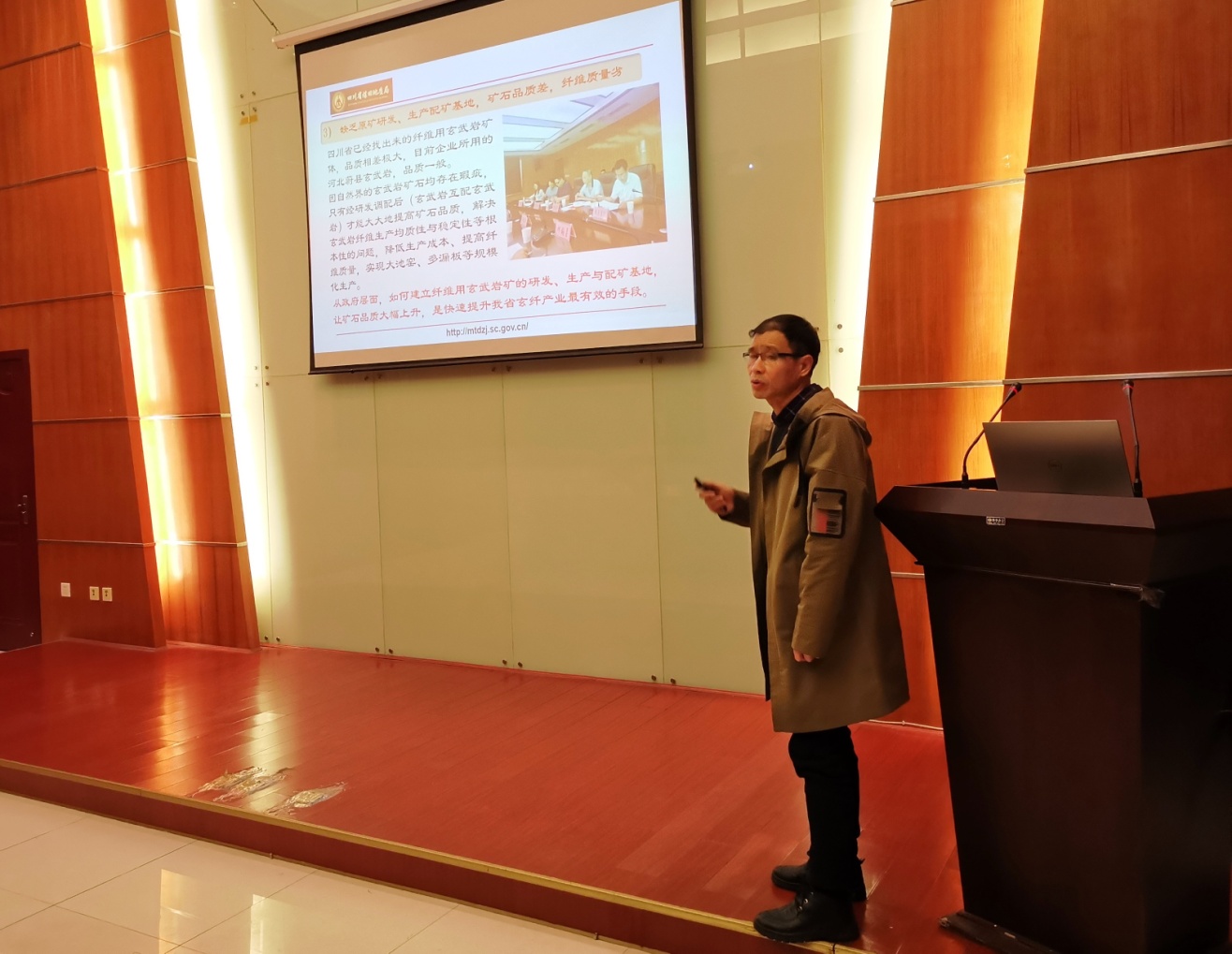 四川华源矿业勘察开发有限责任公司总经理、标委会委员徐小明介绍《四川省纤维用玄武岩矿资源潜力研究》报告