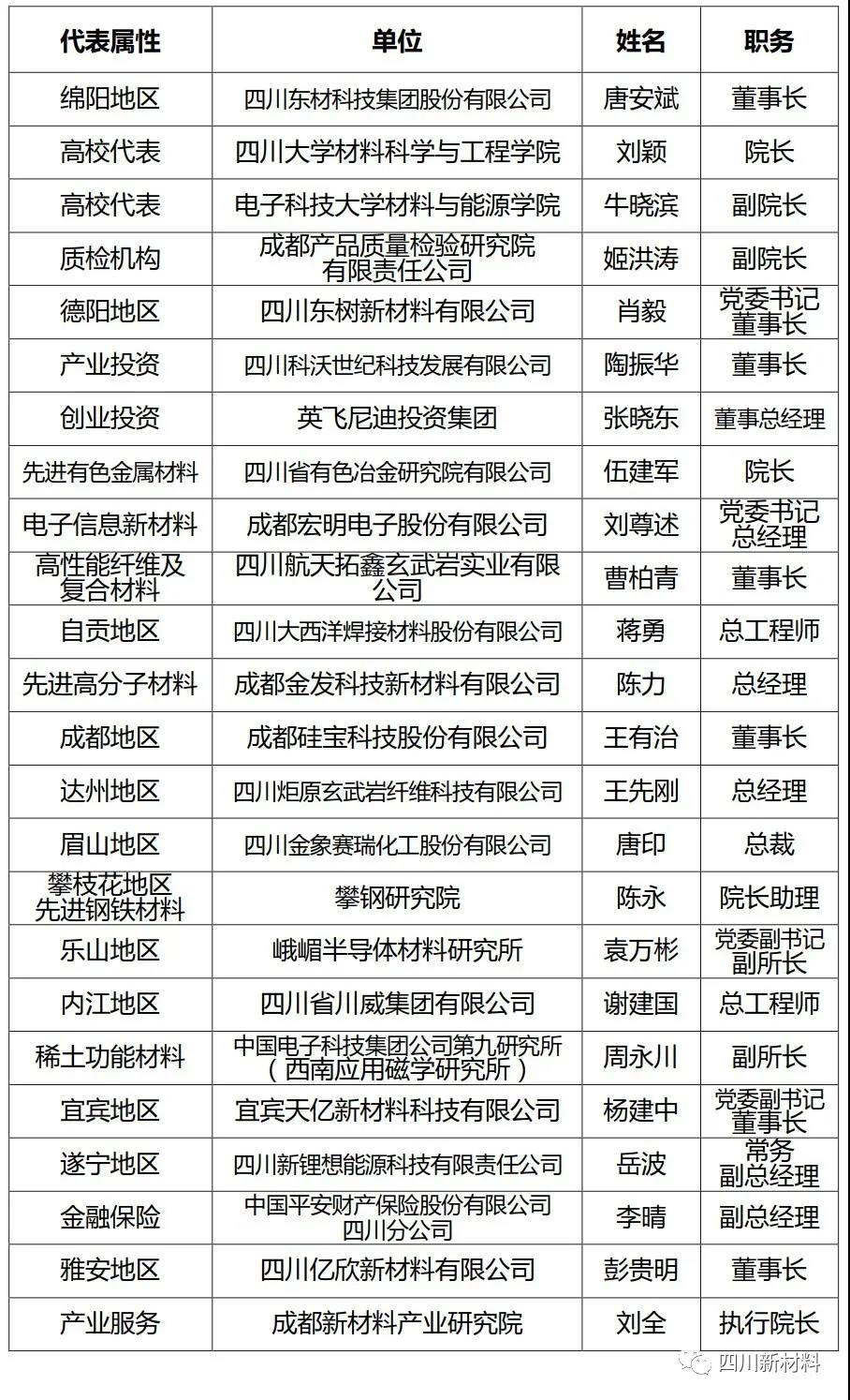 “四川省新材料产业协会”首届负责单位提名名单