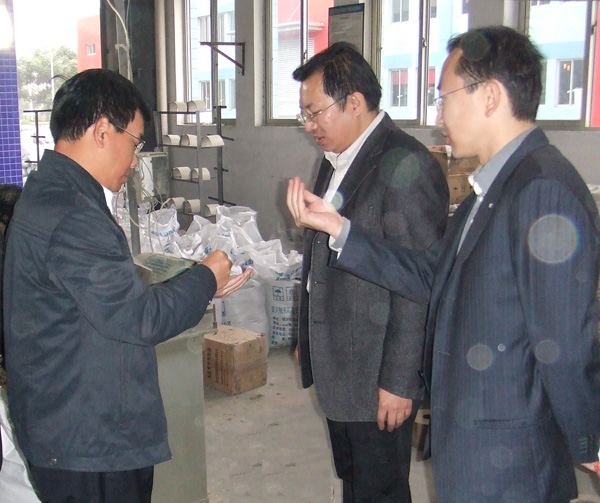 我公司总经理曹柏青陪同来宾参观生产车间,并对玄武岩纤维制品做讲解