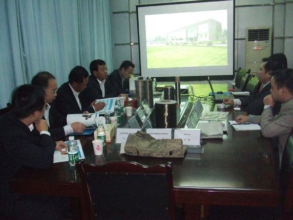 我公司总经理曹柏青、副总经理鲜平、副总经理杨彦斌(右方)向来宾做工作汇报