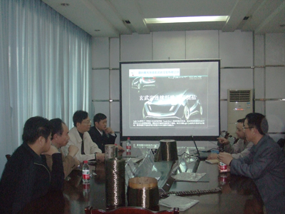 图为我公司副总经理杨彦斌向省经信委建材处处长闫克俭、副处长刘道君等领导作工作汇报