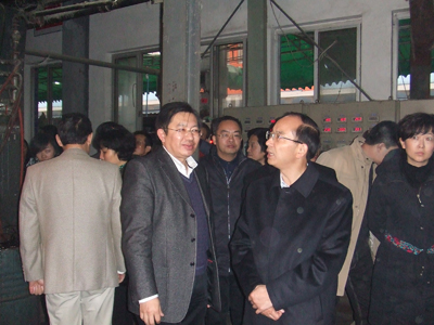 我公司总经理曹柏青(左)陪同四川省副省长李成云(右)等领导一行参观我公司生产车间现场