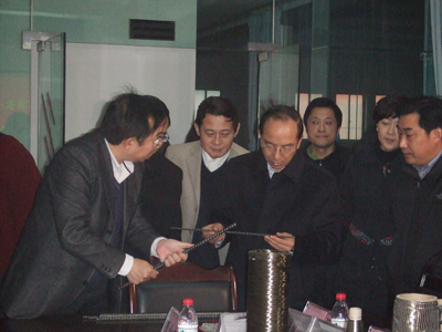 李副省长在听取汇报后表示:1、充分肯定航天拓鑫项目优势、制备技术水平及发展的前景;2、希望航天拓鑫尽快加大项目资金投入,实现大规模的市场产业化;3、希望拓鑫公司加大力度实施后制品生产的产业链扩展,同时打造100亿级产业园区的规划建设;4、希望拓鑫公司大力加强产品市场拓展力度。