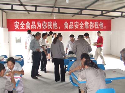 公司领导高度重视食堂的伙食工作。6月14日、15、16日,公司首席顾问、基建办主任张德富,工会主席唐太顺等领导,先后到食堂现场检查食堂运行情况,并与员工共进午餐。