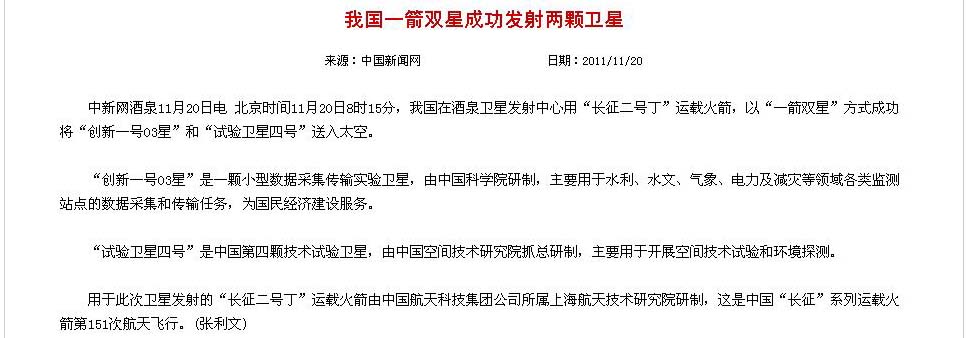 发布时间:2011-11-28 阅读次数:2017 信息来源:中国航天报