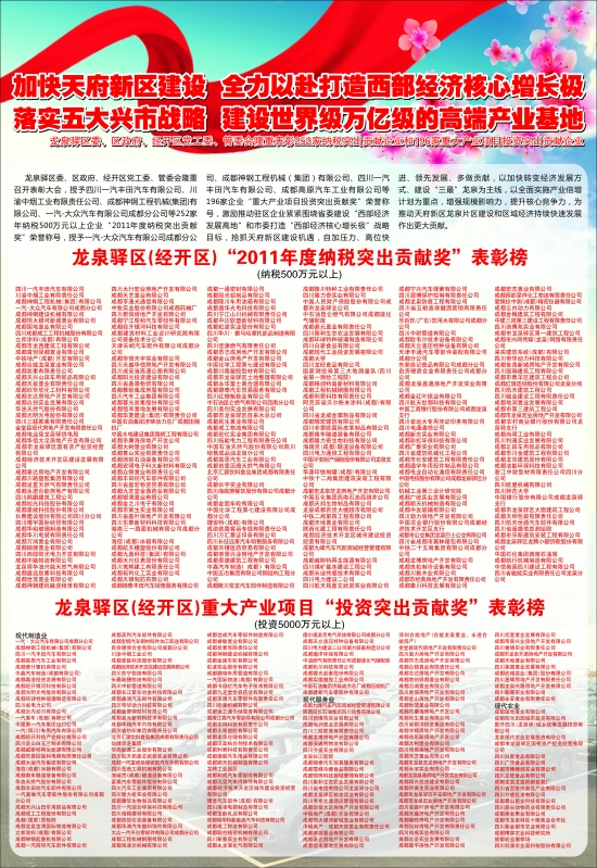 图片3:龙泉驿区(经开区)“2011年度纳税突出贡献奖”表彰榜