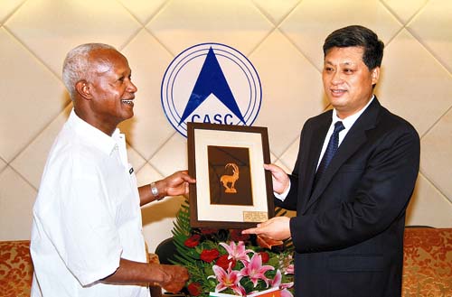 7月24日,埃塞俄比亚总参谋长萨莫拉•尤尼斯上将一行来到中国航天科技集团公司参观访问,集团公司总经理马兴瑞及总部有关部门领导热情接待了代表团一行。