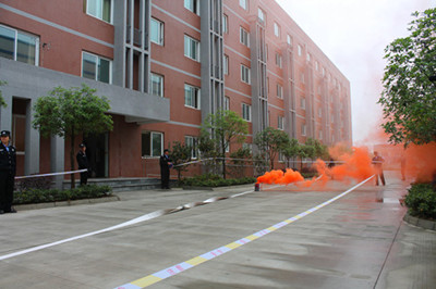 “请注意,该区域内发生紧急情况,请遵从工作人员的指挥,从最近的疏散通道撤出大楼。”在当天演练中,航天拓鑫模拟公司宿舍楼发生火灾,宿舍内部出现火情,并有强烈的浓烟,现场有多名员工被困。天盛物业值班人员立即向总部值班室报告,并迅速向全公司人员发出火灾信号,通过广播发出紧急疏散通知。与此同时,天盛物业值班人员迅速切断电源,组织人员进入宿舍对被困员工进行疏散,天盛物业、航天拓鑫义务消防队员立即进行灭火。此时,赶到的义务消防人员协助对航天拓鑫宿舍处模拟伤员实施救援,并将大火扑灭。