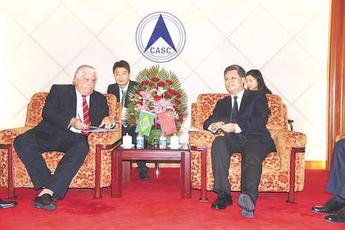 7月3日,中国航天科技集团公司总经理马兴瑞会见了来访的巴西科技部部长如普、巴西宇航局局长博若戈、巴西国家空间研究院院长贝隆迪一行。双方就未来如何进一步拓展合作进行了友好会谈。
