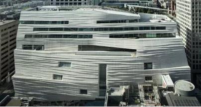 Kreysler & Associates公司为旧金山现代艺术馆(SFMOMA) 的东立面设计了700块“雨幕”纤维增强塑料板。这些FRP板覆盖10层的建筑,并起到防水作用。这些FRP板固定在铝制框架上,形成一个水平的涟漪纹理就像旧金山湾的水域。根据Kreysler & Associates 公司总裁Bill Kreysler 介绍,SFMOMA扩建项目是北美最大的多层建筑纤维增强塑料外墙的应用例。