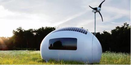 斯洛文尼亚的团队利用轻量化复合材料设计出一款生态胶囊屋Ecocapsule,这种小巧的胶囊屋只有4.57米长,2.13米宽,可利用面积仅为6.5平方米。项目团队利用玻璃纤维和聚酯树脂,分别造出胶囊屋的主要三个部件(底部、左侧半弧和右侧半弧),以及门窗和其他内饰部件。采用真空灌注的生产工艺,玻璃纤维织物和聚酯树脂被分层铺放在铝结构之上,最终形成轻量化胶囊屋。
